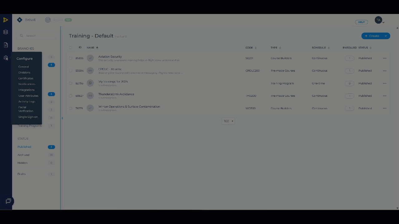 Navigate to Manage Training.